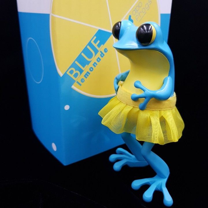 Bright blue and lemon yellow frog